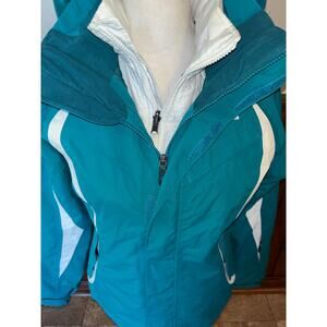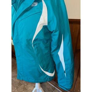 North Face Womens HyVent TriClimate 3-in-1 Winter Hooded Jacket Teal White XS