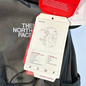 Great new with tags North Face Backpack/Laptop bag. One large compartment with padded laptop sleeve, and a roomy smaller compartment for wallet, cards, pens, snacks etc. Two side pockets for water bottles or whatever. Really nice Army Green light/dark color combination. ACA endorsed. See photos for more detailed information and specifications on tags.