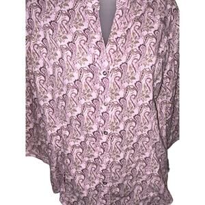 North Face Women's Large Pink Paisley Button Down Roll Tab Shirt V-neck