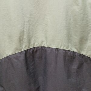 The North Face Women's M HyVent Waterproof Jacket in Green/Gray is a versatile and stylish outerwear option for various occasions. Made with nylon outer shell material and polyester lining, this mid-length jacket features a full zip closure with button accents, perfect for travel, casual wear, or workwear. With features like breathable soft shell fabric, elastic waist, and long sleeves, it is suitable for all seasons and provides comfort and protection during outdoor activities. The color block pattern, North Face logo accents, and mid-length design make this jacket both functional and fashionable for any woman's wardrobe. Has a lot of pockets, no hood. No rips, stains, or tears. As with any used clothing item, expect signs of wear and tear .