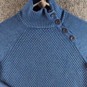 North Face Womens Small Blue Mock Neck Sweater 1/4 Button Cotton Wool Nylon