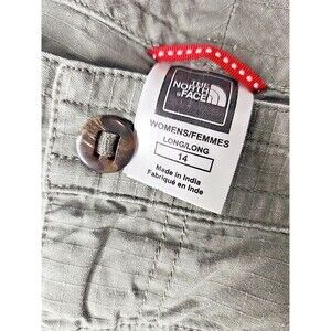 These North Face women's utility shorts are perfect for any hiking or outdoor adventure. The shorts are made of 100% cotton rip stop fabric, ensuring durability and comfort. The greenish gray color and solid pattern make them a stylish addition to any outfit. The shorts feature a button closure and a waist size of 34 inches, with an inseam of 11.5 inches. They are available in size 14 and are part of The North Face brand. These shorts are utility style, perfect for carrying essentials while on the go. Made in India, these shorts are a great addition to any wardrobe for any outdoor enthusiast
