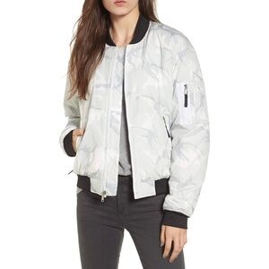 North Face Women’s White Disrupt Camo Bomber Puffer Jacket Sz S