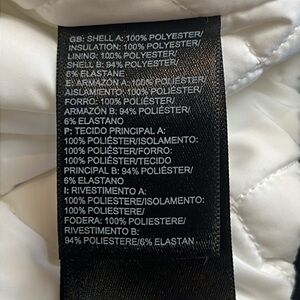 Measurements in the photos. There’s a smile tear at the North face logo. Please say photo. still it’s very nice jacket. Priced accordingly.