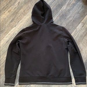 Good condition, faded and has marks as pictured, not super noticeable and still a great hoodie for camping or around the house. Price reflects condition.