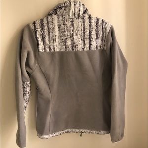Very warm and comfortable this fleece lined zip up has woodland details on breast and trim.