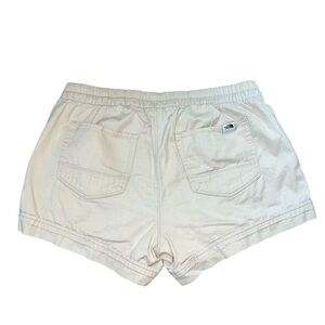 North Face khaki shorts size medium elastic drawstring waist pre owned great condition no flaws see photos for measurements
