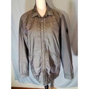 Men's gray jacket perfect for fall weather and cool nights outdoors. Quilted inner lining Size S/P. (Approx. Measurements): Pit to Pit: 20”, Full Length: 27 ”, Sleeve: 25”