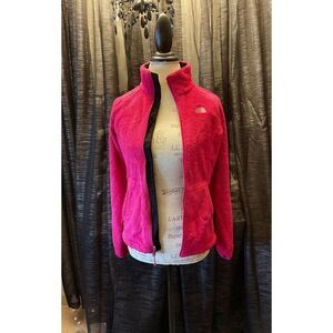 Authentic The North face woman’s size xS(extra small) ( could also be used as a kids L/XL ther run about the same measurements ) Hot pink oso/osito fuzzy,furry high pile microfiber fleece fur jacket/full zip sweatshirt/fleece /