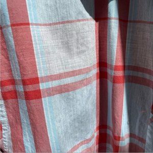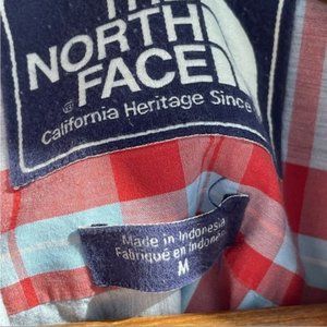 The North Face sky blue, grey and red plaid 100% cotton long-sleeve button up shirt. Beautiful condition, like new. Light soft fabric great for spring or fall or for a cooler summer day/evening.