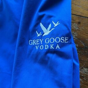 Size L lightweight north Face hooded shell. In excellent condition. Slight mark on the inside as shown. Has Grey Goose Vodka logo on right arm, North Face logo on the left.