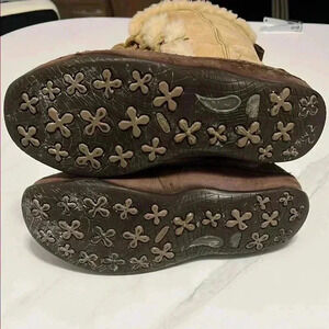 Stay warm and stylish with these beige shearling-lined boots. Perfect for cold weather, these boots offer both comfort and fashion.