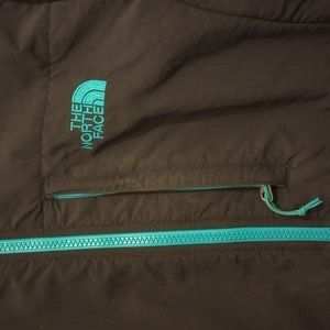 North Face woman's Denali Jacket, size medium, black and teal