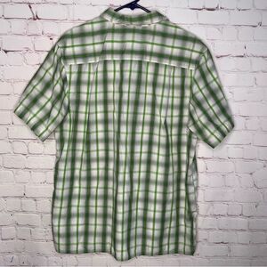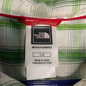 North Face Shirt Mens Large Green White Plaid Button Up Pocket Short Sleeve.