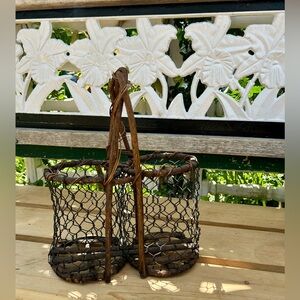 North Fork Vinyard Wine Basket made from Grapevine, Twig and Chicken Wire. Holds 2 bottles.