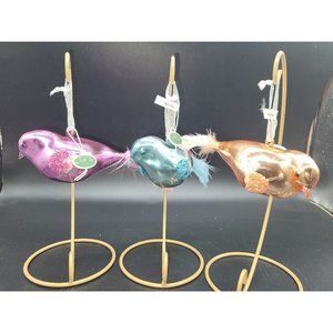 North Pole Trading Co 2002 Collection (3) Christmas Ornaments NWT Birds Mercury