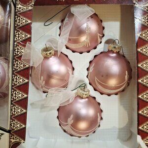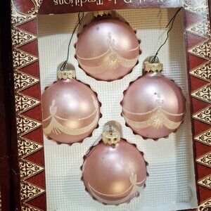 These elegant North Pole Traditions Christmas ornaments offer a classic touch to your holiday decor with their delicate pink hue and intricate detailing.