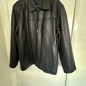 Elevate your style with this sleek black leather jacket. Perfect for any occasion, this jacket offers both comfort and sophistication.