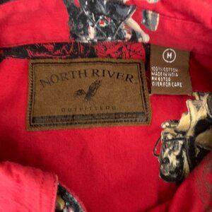 North River Button Down Motorcycle Shirt M Red Long Sleeve Soft Cotton Pocket