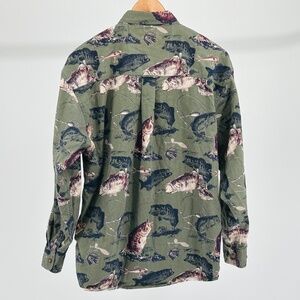 Vintage North River Outfitters Green Fish Trout Cotton Long Sleeve Button Down Shirt