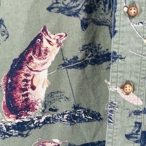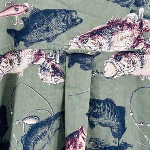 North River Outfitters Green Fish Trout Cotton Long Sleeve Button Down Size M