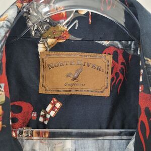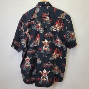North River Shirt Mens XXL Black Motorcycle Biker Santa Button Up Short Sleeve