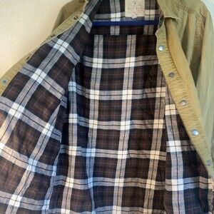 Mens north river Snap button front brown long sleeve Shacket jacket think with a flannel plaid liner on the inside