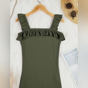 ✿Feature: Sleeveless design, Retro square neckline with feminine ruffled straps,The neckline also carries ruffles detail,add sweet elements.Slim fitting will shows you nice body shape