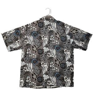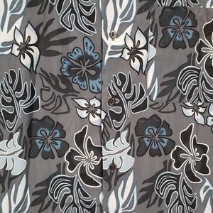 North Shore Surf Mens Large Button Up Hawaiian Shirt Nylon Gray White Blue USA