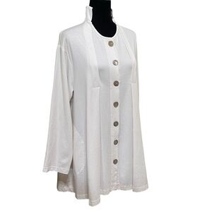 North Star Base White Button Front Lagenlook Minimalist Cardigan Sweater Medium