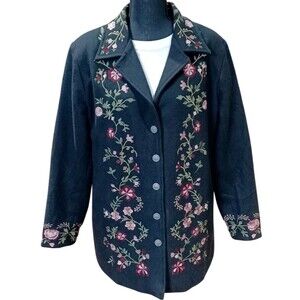 North Style Vintage Sz XL Wool Blend Floral Embroidered Jacket Coat Pockets