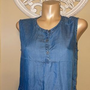 North Style womens shirt Medium 8 10 top blue jean denim sleeveless tunic button