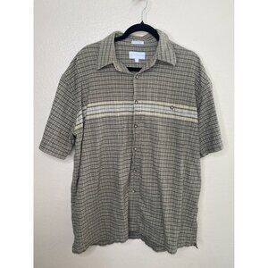 North West Blue Mens Brown Shirt L short sleeve button up collared 100% cotton