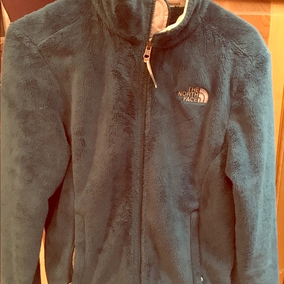 Teal with light grey accents, fuzzy inside and out, zipper pockets, great condition, still in great quality