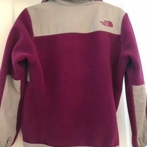 A purple, fleece north face jacket. Is in perfect condition. Can fit a women’s XS or a girls large (14-16)