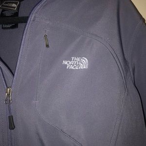 North face soft shell jacket. Pretty subtle purple color. Great for skiing as it is not bulky but very warm. Worn once. In perfect condition!!