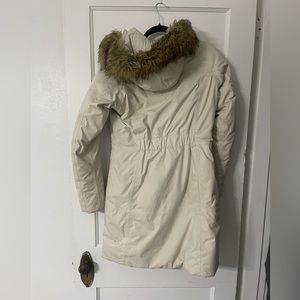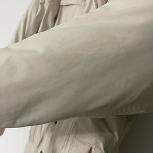 Beige North Face Parka. A couple of stains but could probably get out by taking to dry cleaner.
