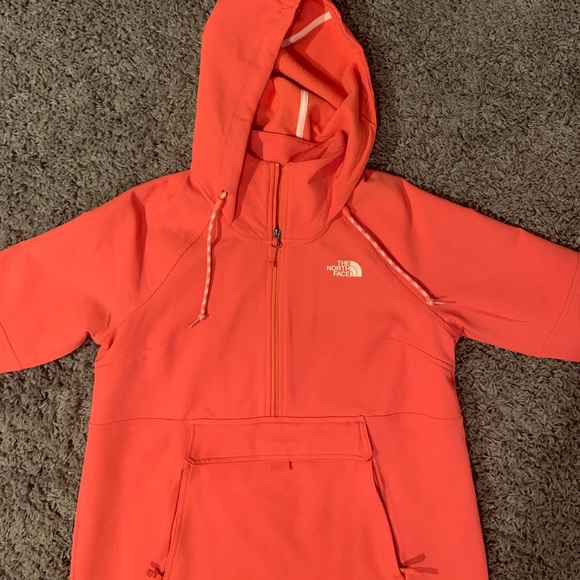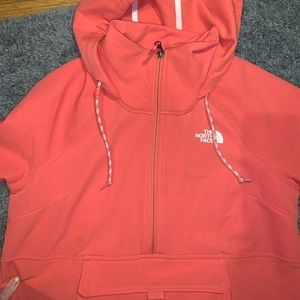 a size medium north face pullover. Never worn before. A coral color