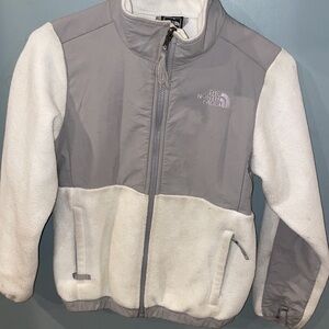 North faced white and silver fleece jacket m(10/12)