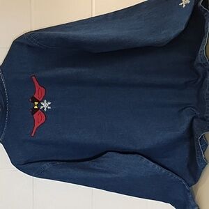 NorthCrest Winter Denim Barn Coat Chore Jacket Embroidery Appliques 26/28