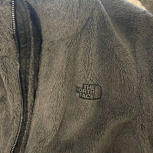Gray fuzzy NorthFace with black accent. Super comfy, can be worn everyday. Only worn a couple times.