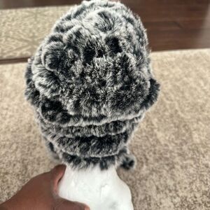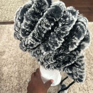 Knitted Rex Rabbit Hat With Ear Flaps And Pom Pom Grey