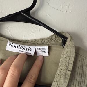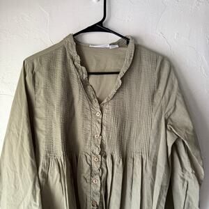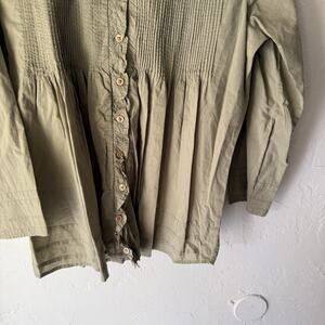 NorthStyle 100% Cotton Pintuck Peasant Top Large Sage Green Ruffle Boho