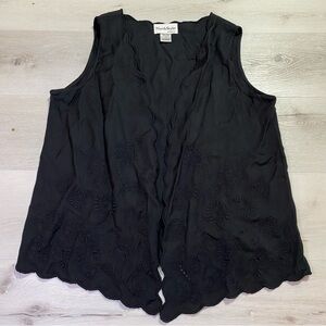 NorthStyle Black Scalloped Eyelet Detail Open Flowy Vest, Size Medium