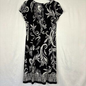 NorthStyle Dress Women’s Petite Small Black White Paisley Stretch V-Neck