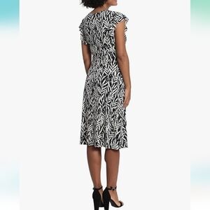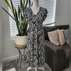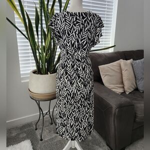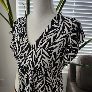 NorthStyle Leaf Print V-Neck Ruffle Sleeve Dress. Black White. Size 10. New without tags.