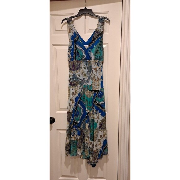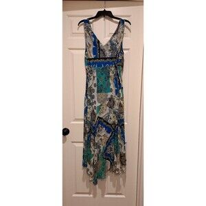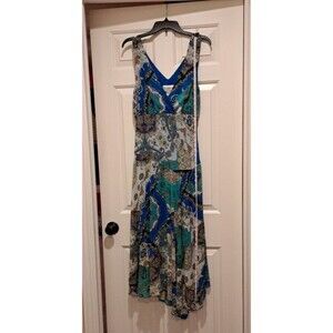 NorthStyle Maxi Dress 16 Paisley Sleeveless Blue White Purple V-Neck Polyester