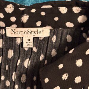 NorthStyle Scattered Dot Pleated Blouse Button-Up Size XL, preowned but in excellent condition