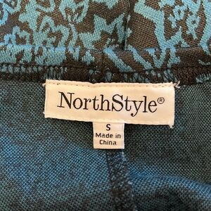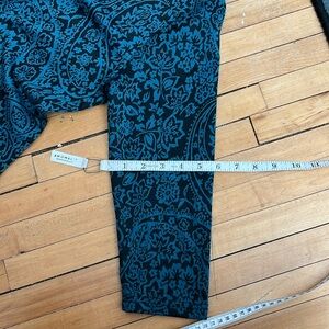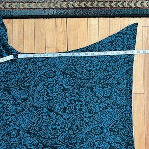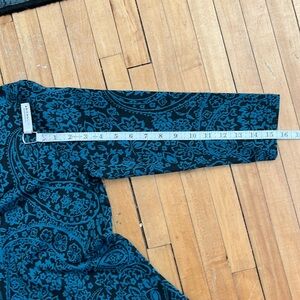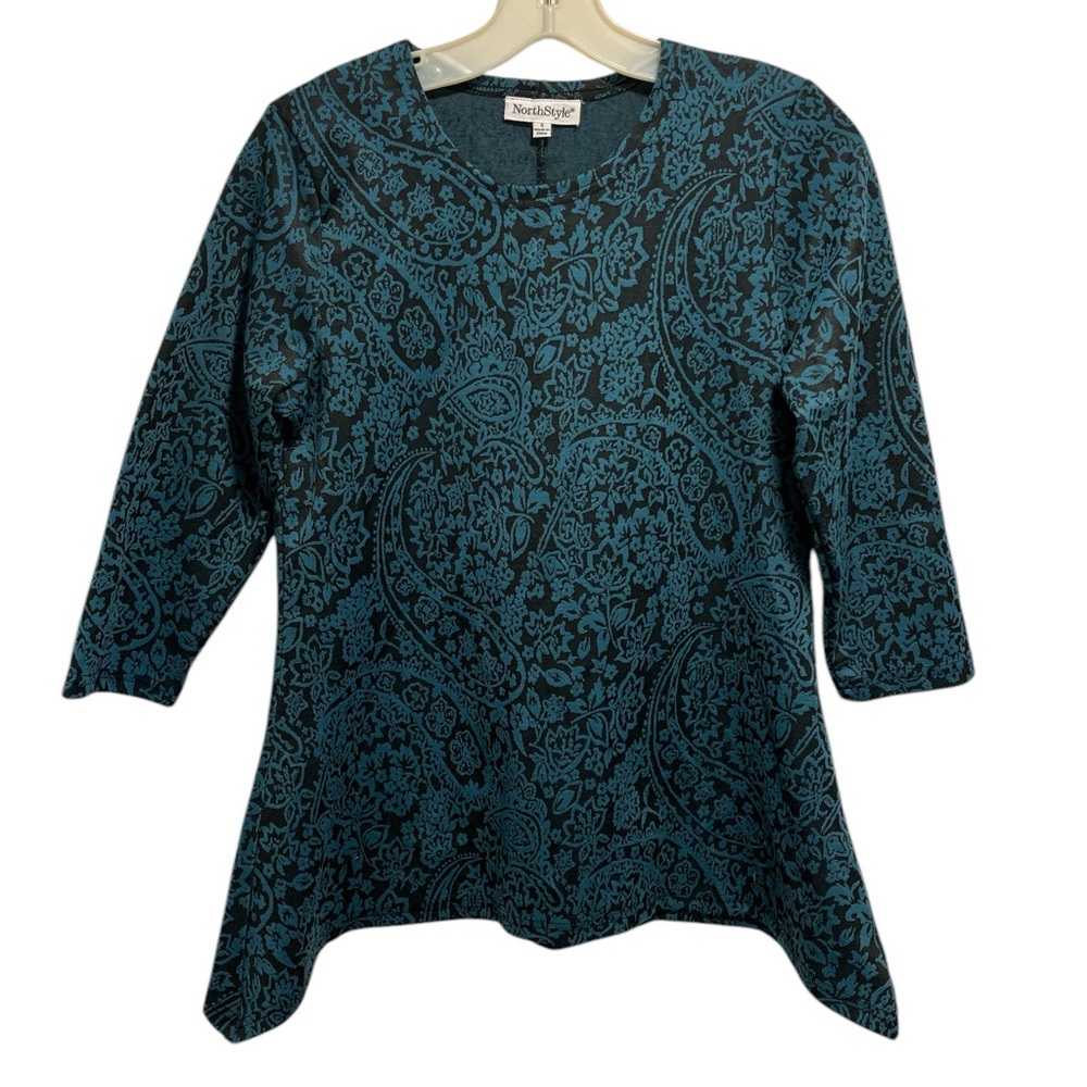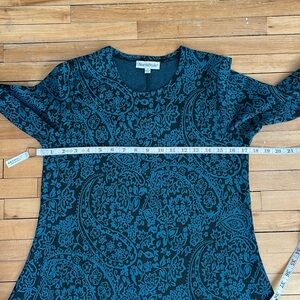NorthStyle Blue and Black Paisley Floral Pattern Long Sleeve Crew Neck Blouse