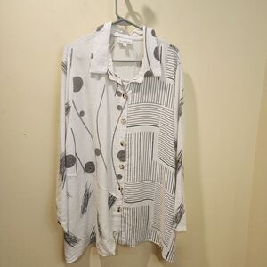 NorthStyle White Button down Roll up Sleeves tunic Shirt Plus Size 1X